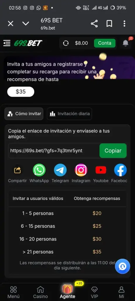 The referral program is one of the best earning features of 69 S Bet Game. First, users must copy their referral link from inside the app. Then they can share it on WhatsApp, Facebook, YouTube, TikTok, Instagram, or any social platform. When people join through their referral link and become active users, the account owner starts receiving a percentage of commission. The more users join through you, the higher your earning growth becomes. By staying consistent and sharing daily, passive income increases naturally.